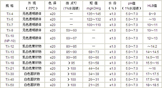 组成:烷基酚与环氧乙烷缩合物